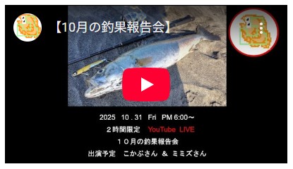 10月は何を釣ったか、月末に釣果報告会として釣ったお魚を頂きながらYouTubeライブにて生配信しました!